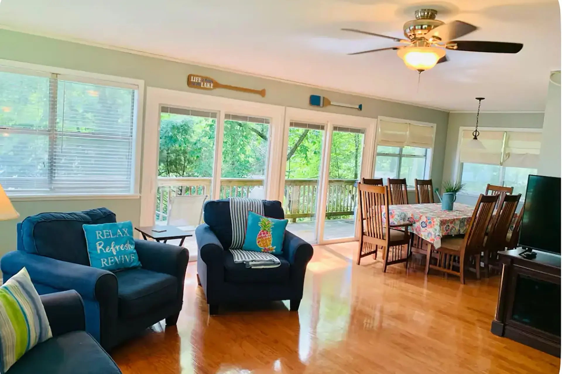 Located in the quiet Coppermine area near Beaver Lake, Coppermine Haven is a four-bedroom retreat for up to 10 guests, offering comfort, wildlife views, and peaceful surroundings. Enjoy lake views from the windows, spot deer and birds from the deck, or relax by the seasonal saltwater pool. Guests also have access to a shared lake area two miles away with free use of kayaks, a canoe, life jackets, and a swim area. After a day outdoors, unwind around the fire pit and picnic table, perfect for roasting s’mores under the stars. Just a few miles from Hobbs State Park, this home is your ideal mix of lake adventure and quiet retreat.